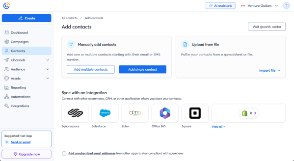 Constant Contact gives you multiple options for how to import contacts: manually add them, upload a file, or sync with your CRM or other tools.