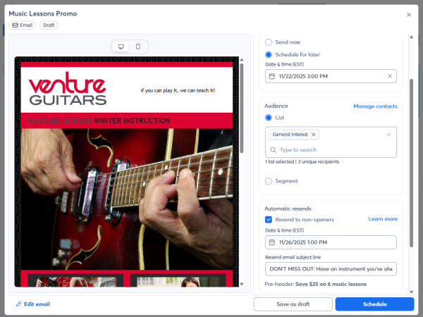 • Running a short-term sale or offer? Turn on Resend to Non-Openers so more people see it.