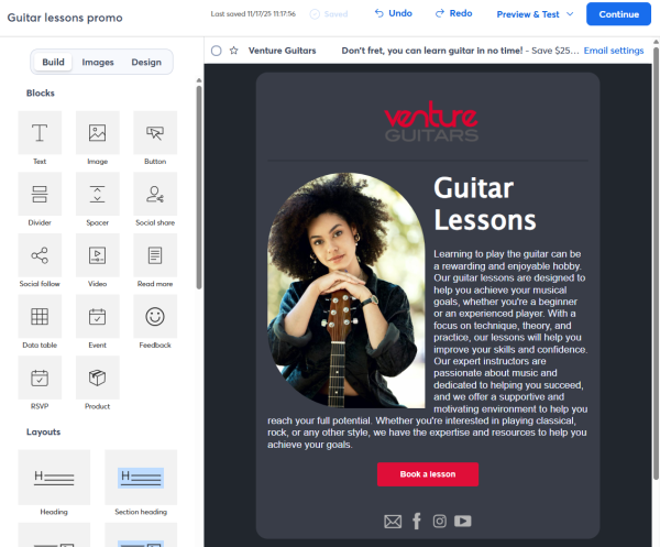 Now comes the fun part: designing your first email. And with Constant Contact’s built-in AI, you can do it in way less time than you’re probably expecting.